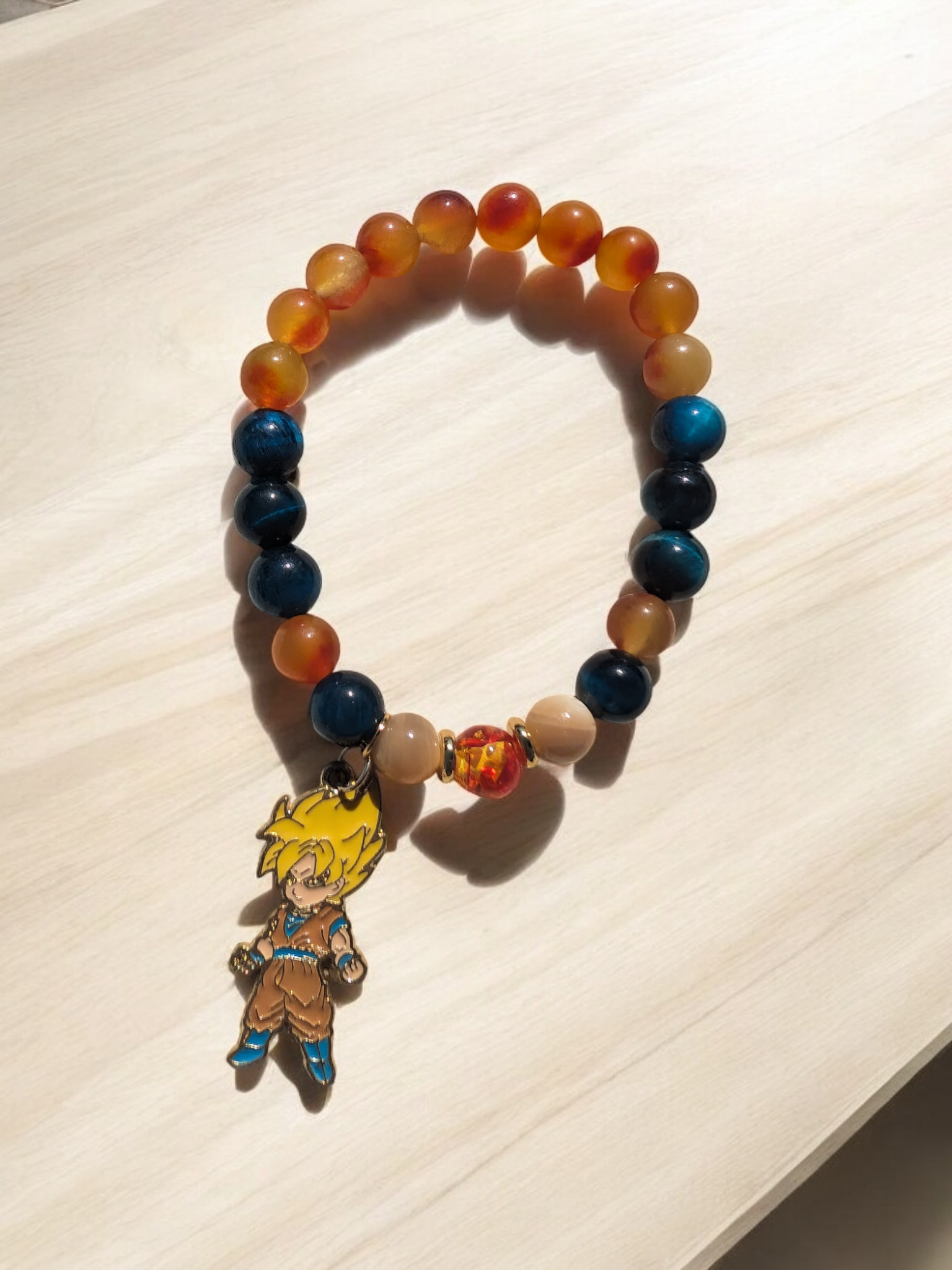 This unofficial DB inspired bracelet is the perfect addition to any fan's jewelry collection. The bracelet features 8mm real tiger eye stones and synthetic stones, making it a unique piece.